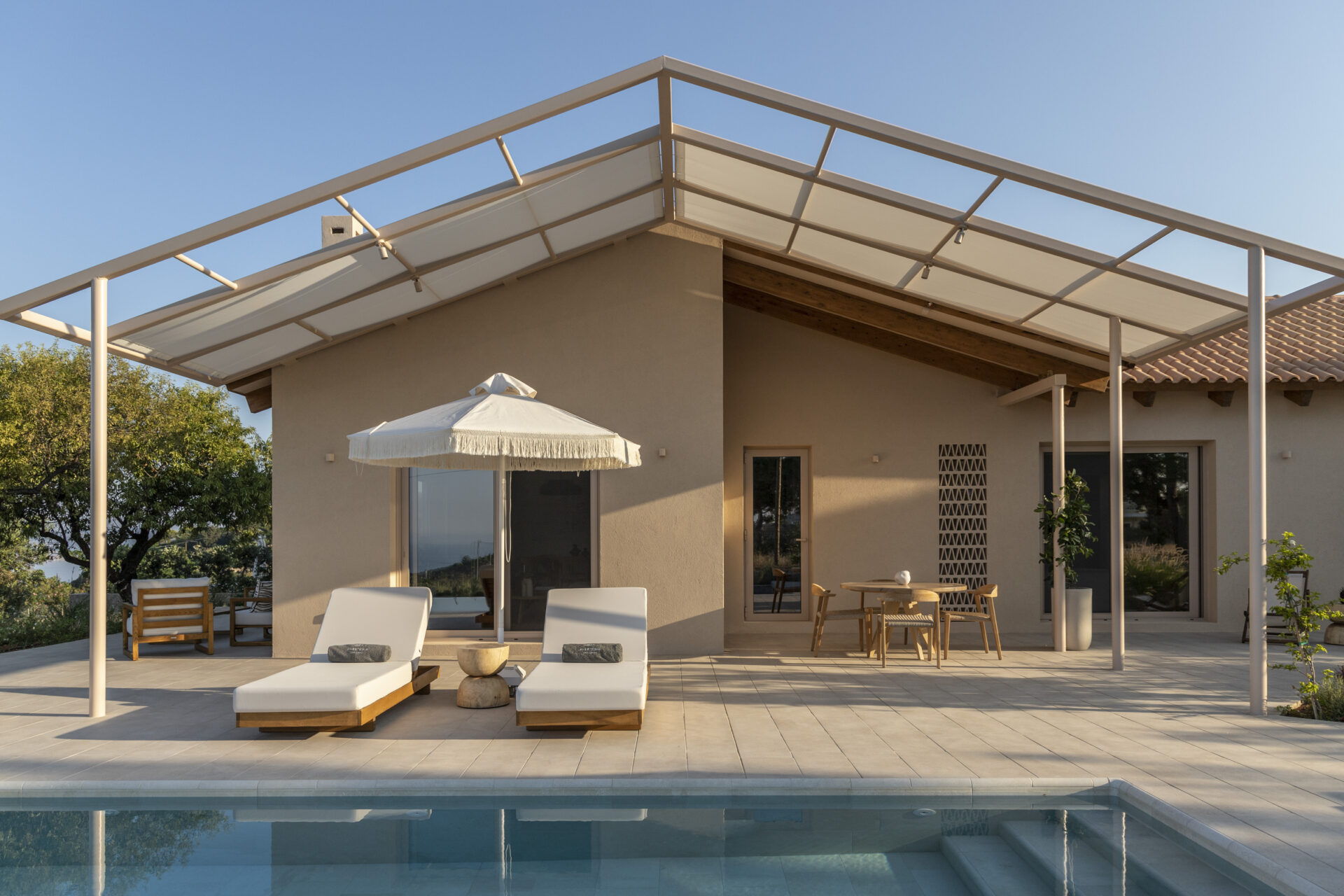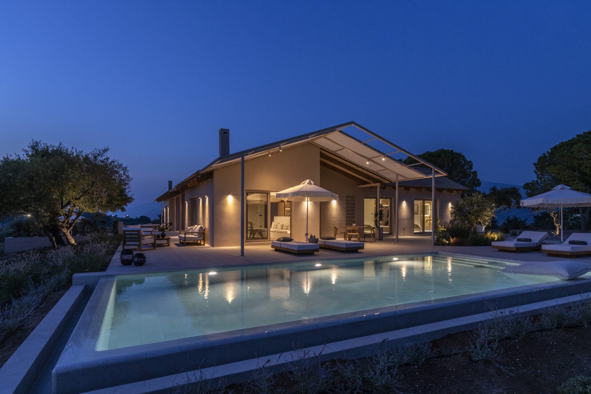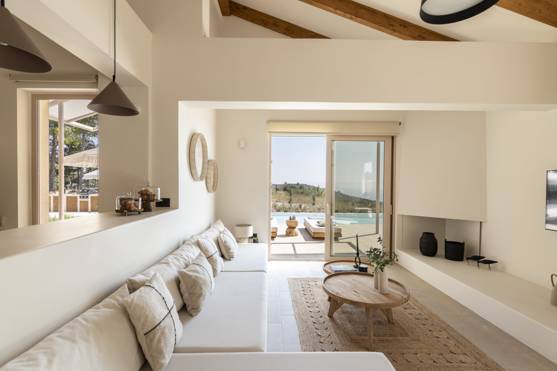 Surrounded by olive groves and lush greenery, Avertosia Villa 2 offers breathtaking views of the Ionian Sea and Kefalonia’s rolling hills. The villa features bright open-plan living spaces, a fully equipped kitchen, and two elegant bedrooms with ensuite bathrooms — all designed for maximum comfort and relaxation. Large glass doors open to your private terrace and infinity heated pool, where you can unwind under the sun or enjoy unforgettable sunsets with a glass of local wine.