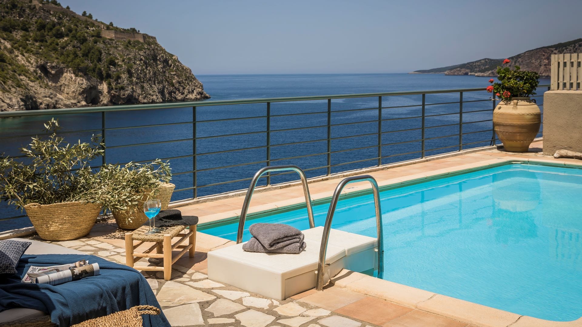 Welcome to Villa Akrogiali, a stunning seaside villa in Assos, Kefalonia, named after the Greek word for “the seaside” — and rightly so. This villa’s highlight is its unbeatable proximity to the Ionian Sea, offering guests cooling sea breezes and breathtaking sunset views over Myrtos Bay and Assos Castle.