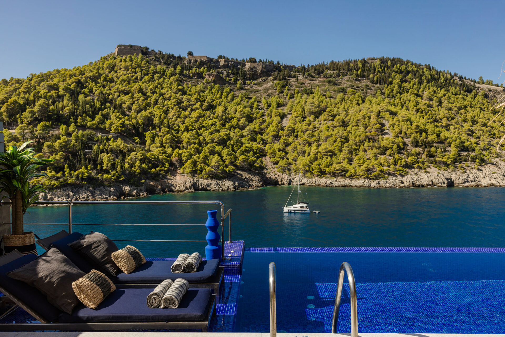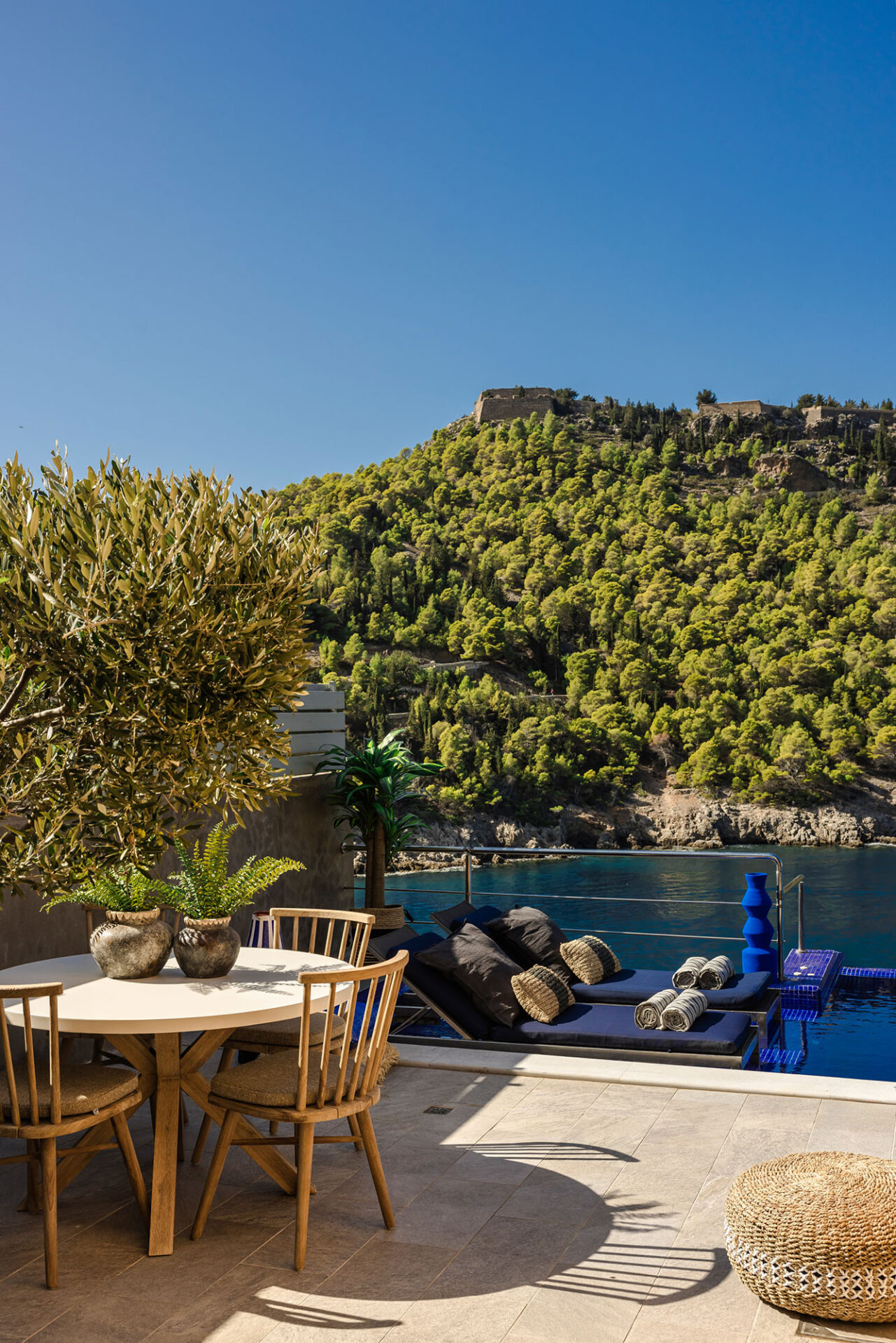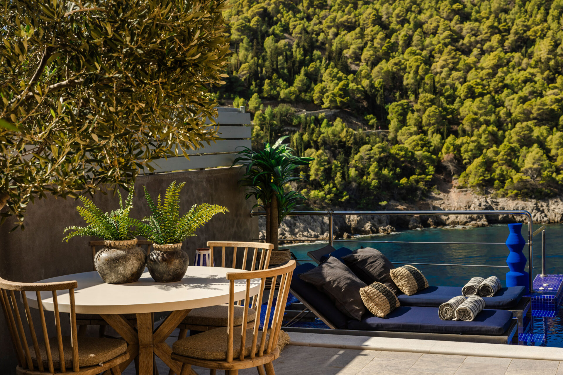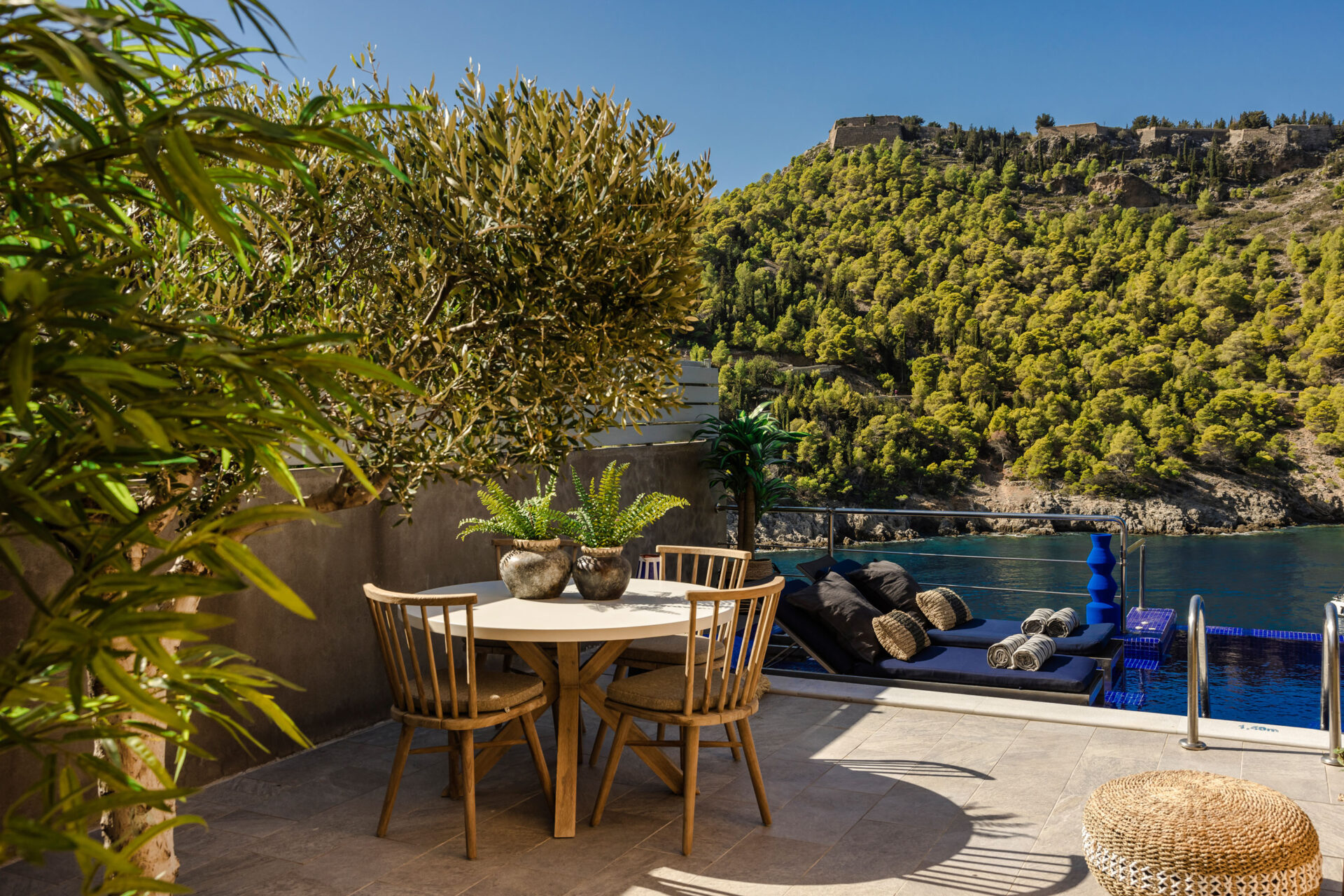 From the terrace, private stone steps descend to the seafront and a small natural rock platform, perfect for swimming or simply relaxing by the water. For those who love adventure, a secluded beach lies just 200 meters away — accessible only by sea or a refreshing swim.