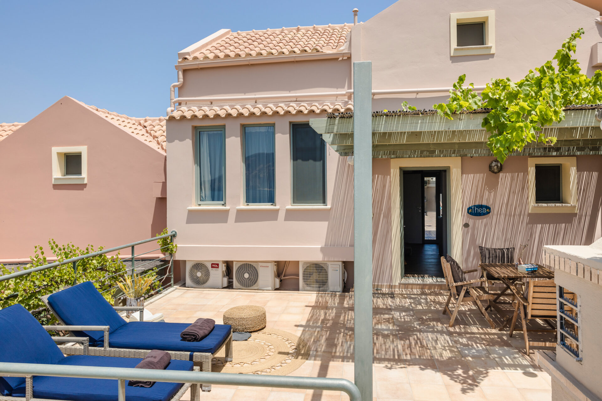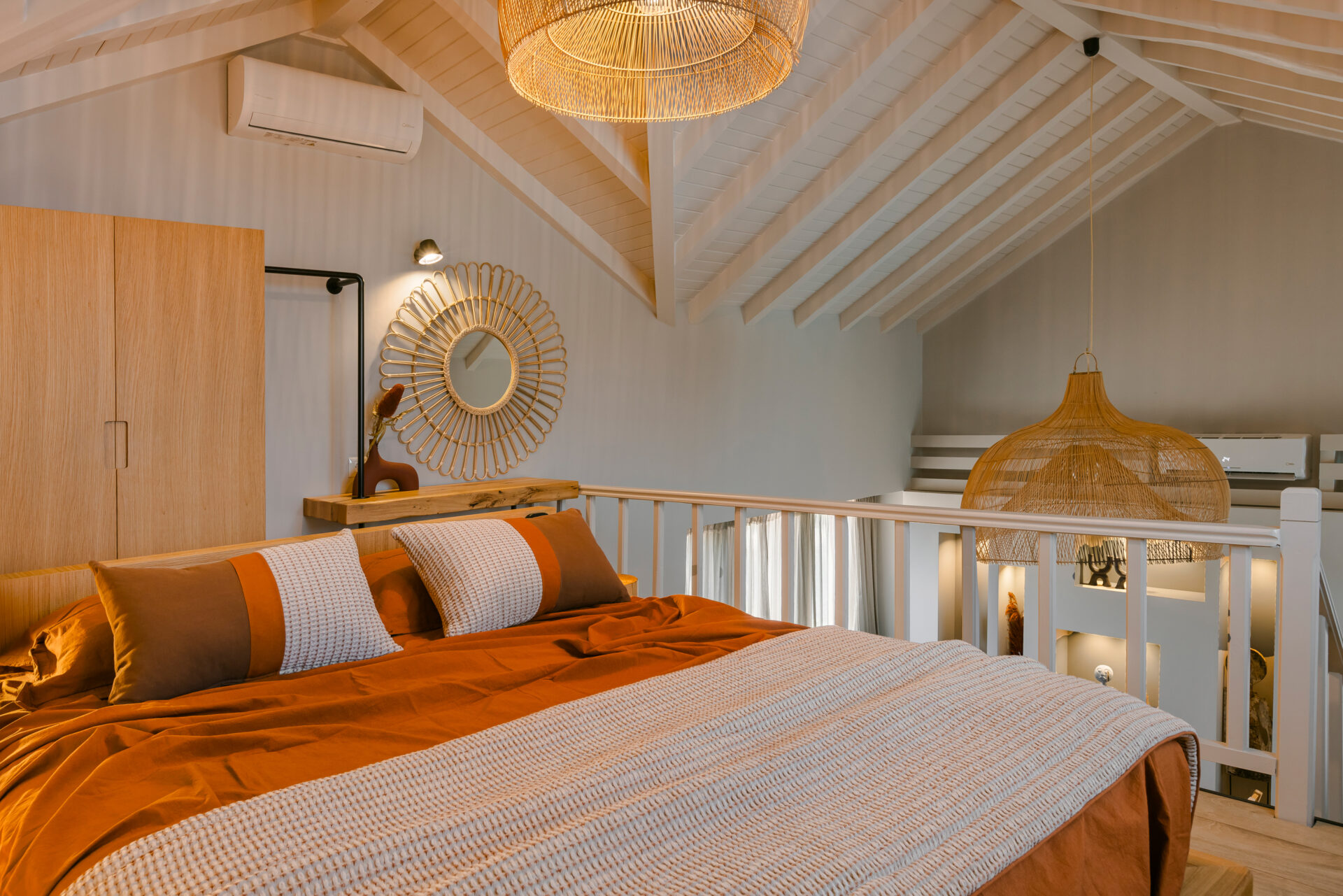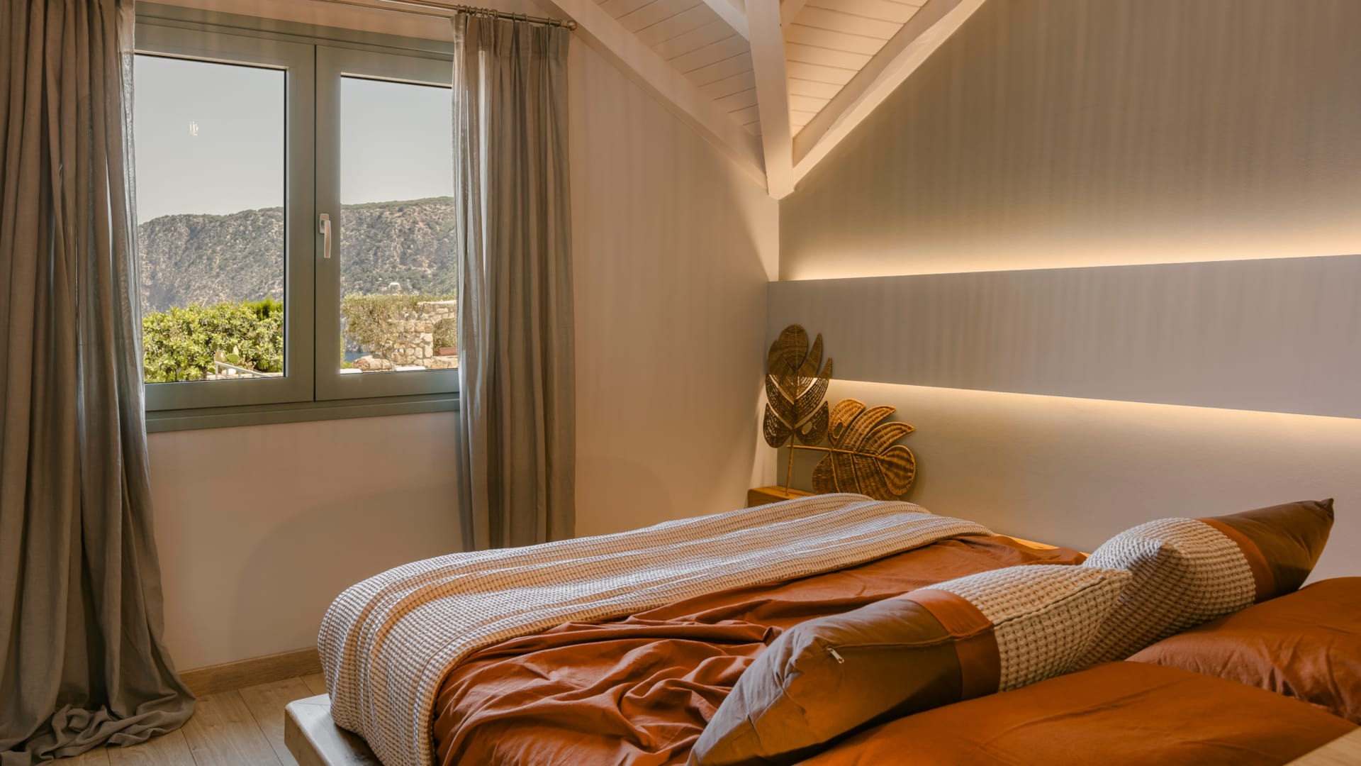 Inside this charming Kefalonia villa, comfort meets coastal elegance in a bright open-plan living and dining area, enhanced by large windows that fill the space with natural light and refreshing air. The fully equipped kitchen opens directly onto the terrace, making outdoor meals both effortless and enjoyable. The ground-floor twin bedroom offers seamless indoor–outdoor living with its private balcony, while the attic master bedroom provides peaceful seclusion and sweeping views of the Ionian Sea.